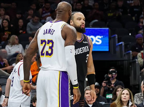 值得一提的是,在最后時(shí)刻,湖人3分52秒的時(shí)間里只有一個(gè)運(yùn)動(dòng)戰(zhàn)進(jìn)球,其他得分全都是靠罰球。特別是在比賽最后時(shí)刻,狄龍?jiān)谕哆M(jìn)三分之后原本認(rèn)為是一個(gè)3+1,但是裁判沒有給,隨后他挑釁詹姆斯,湖人獲得1罰1擲。在詹姆斯罰球不中之后,隨后湖人球權(quán),詹姆斯造成三罰。太陽挑戰(zhàn)失敗,湖人最后驚險(xiǎn)獲勝。