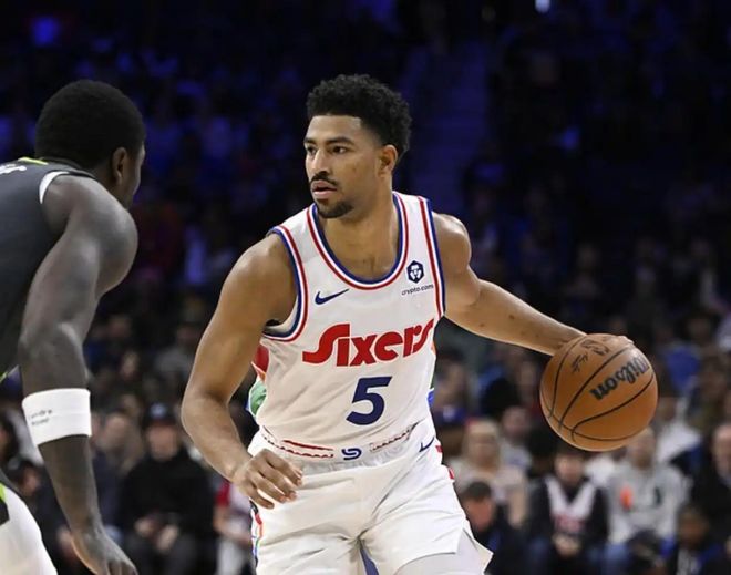 首先球隊(duì)馬克西的回歸,就拿走了后場(chǎng)大多數(shù)球權(quán),作為球隊(duì)后場(chǎng)的絕對(duì)核心,馬克西本賽季場(chǎng)均30.8分4.4籃板7助攻,格蘭姆斯在馬克西身邊,甚至連打下手的位置都沒有,因?yàn)榍蜿?duì)在今年還用首輪第3順位選中了VJ-埃奇庫(kù)姆,一位跟他位置相同,身高相同,但是天賦截然不同的新人,埃奇庫(kù)姆生涯第一場(chǎng)比賽就拿到34分,本賽季至今場(chǎng)均15.8分5.6籃板3.9助攻1.2搶斷,格蘭姆斯跟這位20歲的潛力新星,根本沒有可比性。
