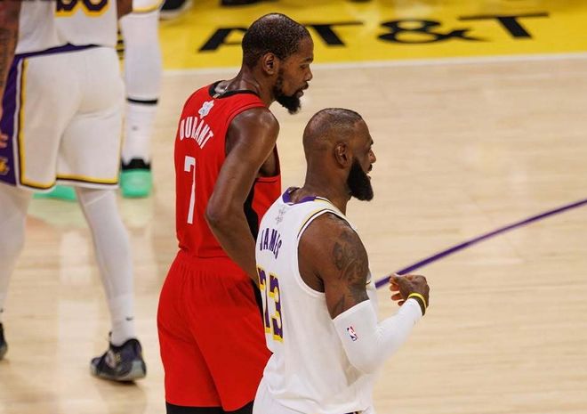 如果單純以球權(quán)占有率評價老詹,難免有失偏頗,因為里夫斯不在,老詹必須站出來貢獻更多得分。但有一個細節(jié)值得深思,和火箭的比賽,當(dāng)火箭球員申京即將出手時,老詹就已經(jīng)往對方半場跑了,準(zhǔn)備下快攻??梢哉f他細節(jié)意識把握到位,但把自家籃下留給了對方。而高階數(shù)據(jù)其實更尷尬,本賽季詹姆斯在場時,湖人百回合凈效率值-7.1;他不在場時,球隊凈效率值+2.5,老詹On-Off值為-9.6,其中進攻端差距不大,但防守端,詹姆斯在場防守效率是125.8,他不在場時球隊防守效率是116.8,所有數(shù)據(jù)《BR》可查。