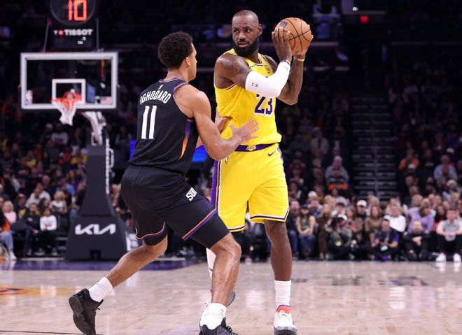 湖人為什么在最近連續(xù)遭遇20多分的慘???來看幾組數(shù)據(jù),本賽季東契奇出戰(zhàn)的比賽,贏球線是他貢獻(xiàn)場均36.3分8.8籃板9.3助攻,球權(quán)占有率37.8%;但輸?shù)舻谋荣?,東契奇場均28分6.9籃板7.5助攻,球權(quán)占有率是驚人的40%!對比老詹,贏球線是場均20.1分5.1籃板7.7助攻,球權(quán)占有率是25%;而老詹出戰(zhàn)時輸?shù)舻谋荣?,場?0.5分4.5籃板4.8助攻,球權(quán)占有率29%!顯然,湖人想贏球,很簡單,東契奇效率高點,減少過多的持球;詹姆斯也應(yīng)當(dāng)控制持球時間,做到最基本的串聯(lián)帶動隊友。這里是并行關(guān)系,缺一不可。