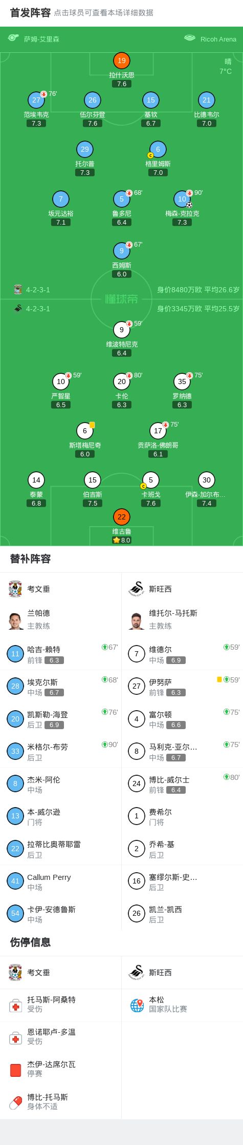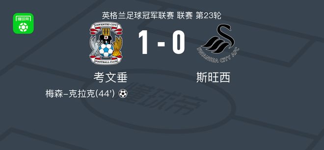 北京時(shí)間12月26日,英格蘭足球冠軍聯(lián)賽第23輪,考文垂坐鎮(zhèn)主場迎戰(zhàn)斯旺西。比賽中,梅森-克拉克攻入全場唯一進(jìn)球,幫助球隊(duì)取得領(lǐng)先。憑借這一進(jìn)球,考文垂最終以1-0戰(zhàn)勝斯旺西,全取三分。