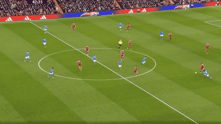1分鐘后,利物浦再次取得進球,?;倏撕途S爾茨位置互換,?;倏说膫髑蚯〉胶锰?,維爾茨跟進破門。