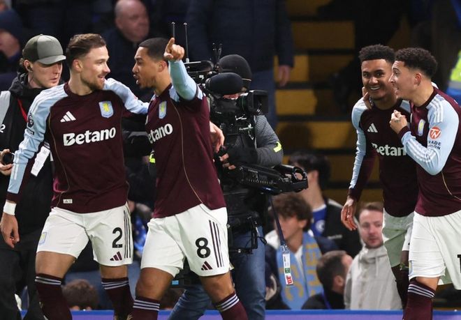 阿斯頓維拉進(jìn)入狀態(tài)比較慢,開場后就踢得很被動。帕爾默早早獲得機(jī)會,只是他的射門踢偏了。恩佐-費(fèi)爾南德斯、佩德羅和里斯-詹姆斯也是接連錯失良機(jī)。直到比賽的第37分鐘,阿斯頓維拉丟球了。依靠角球機(jī)會,里斯-詹姆斯助攻佩德羅取得進(jìn)球。半場結(jié)束,阿斯頓維拉0-1落后。阿斯頓維拉上半場控球率只有29%,竟然沒有一腳射門。而切爾西上半場足足有10次射門,3次射正,進(jìn)了1球。