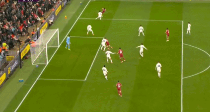 第42分鐘,索博斯洛伊右路定位球傳中,范戴克搶點頭球攻門,皮球高出橫梁。