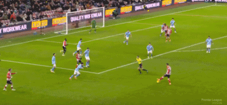 第91分鐘,謝爾基右路強(qiáng)行突破,福登射門被封堵,格瓦迪奧爾近距離補(bǔ)射,又被桑德蘭后衛(wèi)在門線前解圍出來。