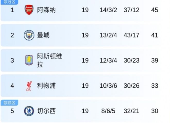 積分榜前7的球隊(duì),本輪只有阿森納以一場(chǎng)4-1對(duì)維拉的大勝全取三分。