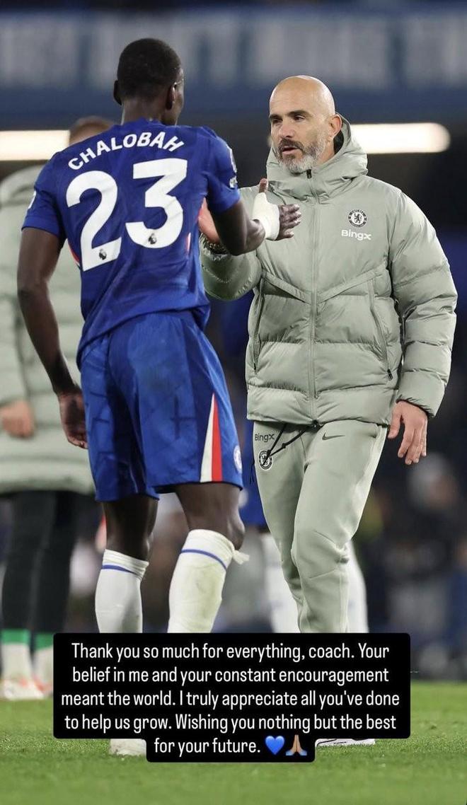 在切爾西官方宣布主帥馬雷斯卡離任后,切爾西后衛(wèi)特雷沃-查洛巴在社交媒體發(fā)文告別馬雷斯卡。