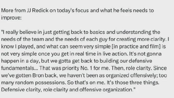 原來(lái)是湖人主帥雷迪克在接受公開采訪時(shí)候說(shuō)的,不過(guò)人家也講了球隊(duì)出現(xiàn)如上所述的問題是他的責(zé)任。
