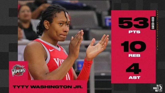效力于圣地亞哥快船期間,小華盛頓的表現(xiàn)堪稱炸裂,場均能轟下17.9分4.6籃板5.9助攻1.5搶斷,投籃命中率46.5%,三分命中率也有41.1%,攻防兩端的效率都相當在線。更值得一提的是,這位2001年出生的年輕后衛(wèi),曾在G聯(lián)盟打出過單場53分10籃板4助攻的逆天數(shù)據(jù),得分爆發(fā)力完全不用擔心。