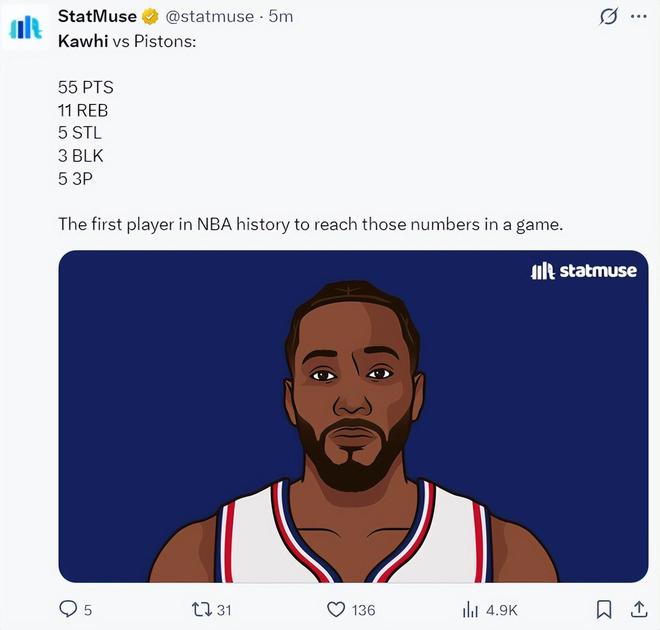 4.他是歷史首位55+11+5斷+3帽+5三分的球員;