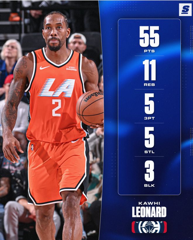 這場比賽倫納德創(chuàng)造多項紀錄: