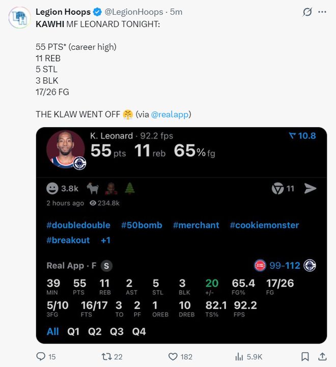北京時間12月29日,快船112-99大勝活塞拿到四連勝。這場比賽快船一度領(lǐng)先活塞26分,可在末節(jié)快船全隊開始松懈,活塞瘋狂追分又讓小卡、哈登加班,好在決勝時刻兩個巨頭罰球很穩(wěn)定幫助球隊拿下勝利,小卡55分也迎來生涯之夜。