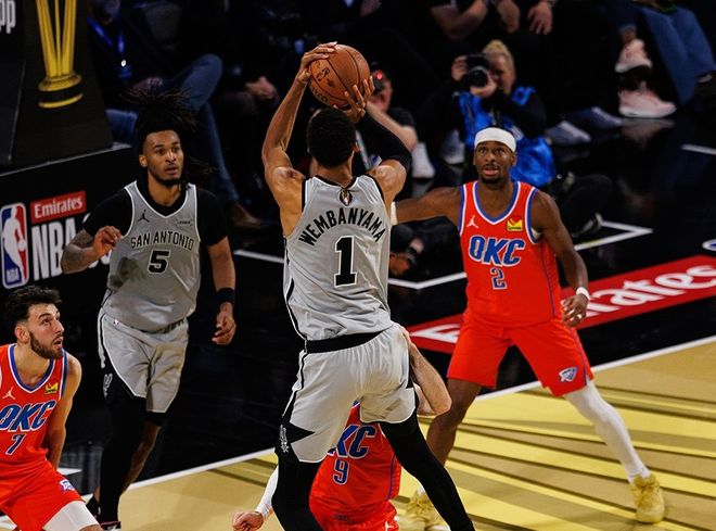 強(qiáng)調(diào)兩點(diǎn):第一這只是可能,第二,這是從高階數(shù)據(jù)呈現(xiàn)出來的結(jié)果,如果真將雷霆放在過去NBA對抗尺度下,他們這些小身板估計受不了。但實話實說,NBA常規(guī)賽,對于雷霆已經(jīng)沒任何難度了。賽季前25場比賽贏下24場,只被開拓者逆轉(zhuǎn)過22分;但從12月中旬到下旬,雷霆遇到了克星馬刺,三場比賽,第一戰(zhàn)2分惜??;第二戰(zhàn)輸20分,第三戰(zhàn)輸15分。馬刺擊敗雷霆的方式其實很簡單,雷霆不善于限制對手三分(對手打雷霆時三分球命中率37.4%,聯(lián)盟第6),雷霆也沒有前場籃板球保障(本賽季場均前場籃板9.3記,聯(lián)盟倒數(shù)第二)。