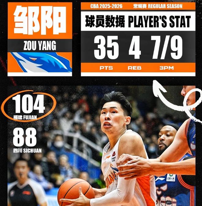 另外一場比賽,福建本輪迎戰(zhàn)副班長四川,也拿下了一場輕松的大勝,104-88擊敗四川,福建斬獲2連勝,鄒陽打出生涯之夜,出戰(zhàn)33分鐘17中13,三分9中7轟下全場最高35分4籃板3助攻1搶斷,刷新了個(gè)人生涯單場最高分。本輪稍早前的2場比賽,上海客場以91-65大勝遼寧,深圳101-105不敵北控。