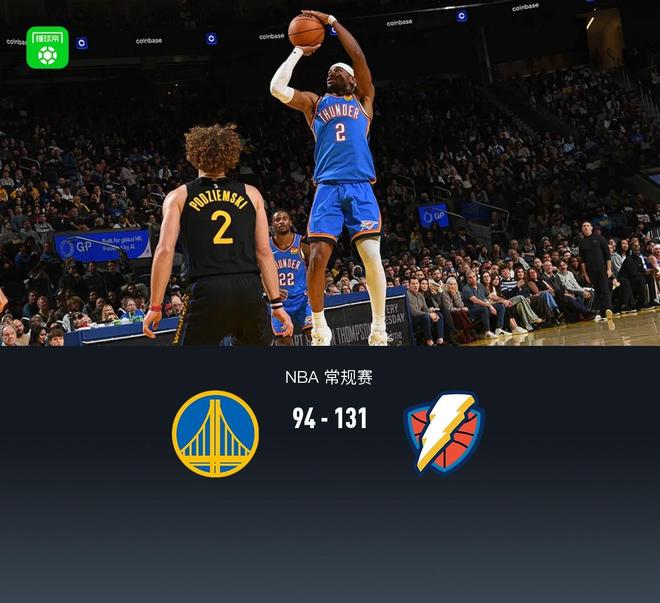 第四節(jié),雷霆直接收兵換下主力,進(jìn)入到練兵時(shí)間,分差始終維持30分上下,比賽收尾段雷霆最大領(lǐng)先41分,全場結(jié)束,雷霆131-94勇士。