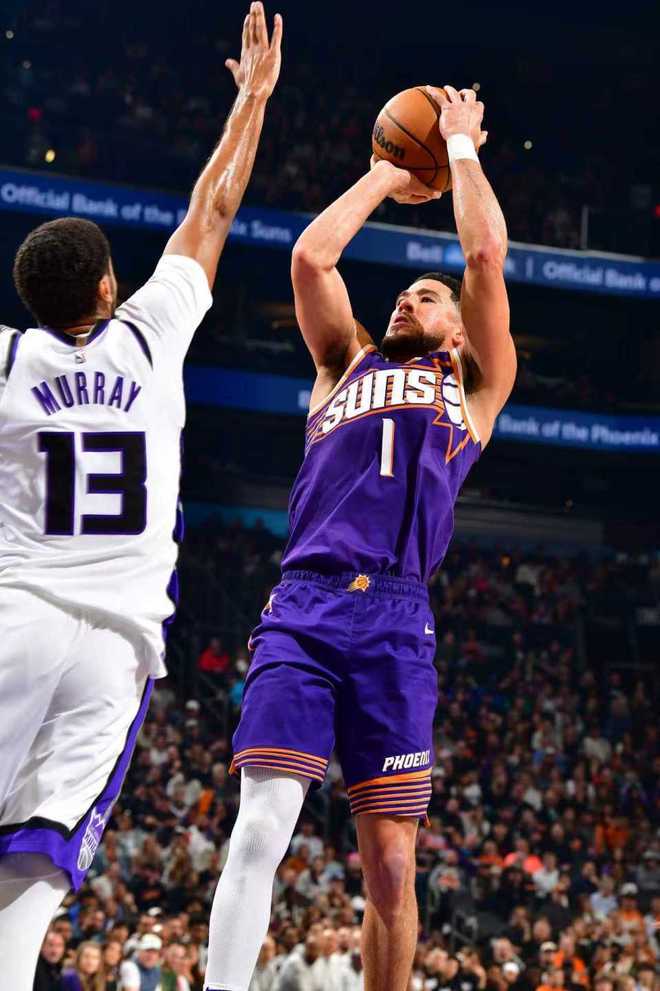 次節(jié)比賽,太陽連續(xù)兩節(jié)單節(jié)得分30+,且限制國王連續(xù)兩節(jié)單節(jié)得分不足30分。太陽率先37-40被反超比分,太陽一波8-0攻勢反超比分,雙方隨后交替領(lǐng)先纏斗至太陽55-56落后。太陽回敬一波7-0攻勢反超比分,太陽單節(jié)30-27凈勝3分,上半場結(jié)束太陽62-56領(lǐng)先國王。前兩節(jié)比賽雙方均是只有一人得分上雙,國王三分15中6,穆雷9中6得到16+5、威少5中2僅得到4+4+5;太陽三分19中5,布克16中10得到27分3助攻。