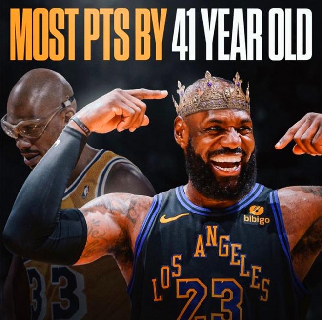 第一項:詹姆斯成為NBA歷史上首位在41歲后,還能做到單場30+的球員。