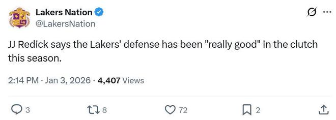 本場擊敗灰熊之后,湖人隊本賽季打到關(guān)鍵時刻(最后5分鐘分差5分內(nèi))的比賽拿下11勝0負不敗戰(zhàn)績高居聯(lián)盟第一。