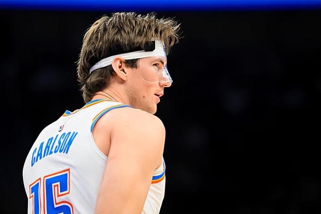 本場比賽中,雷霆的替補內(nèi)線球員布蘭登-卡爾森(Branden Carlson)的表現(xiàn)給大家留下了深刻的印象??柹珗龀鰣?1分37秒,投籃9中6,三分線外2中1,罰球2中2,得到了15分11籃板2助攻2搶斷的兩雙數(shù)據(jù),其中還包括了3個前場籃板,還有1次失誤和3次犯規(guī),正負值為+13。值得一提的是,15分是卡爾森本賽季的單場最高得分,11籃板更是他職業(yè)生涯的單場籃板數(shù)新高,本場比賽也是卡爾森本賽季至今的單場最佳之戰(zhàn)。