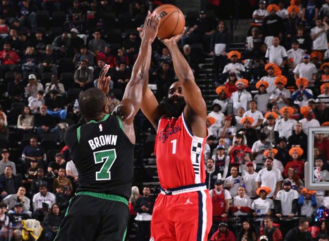 第二,哈登明顯是累了。其實說句難聽的話,第一節(jié)布朗找到手感,就是從哈登這里打開的突破口。連續(xù)軍訓(xùn)點名哈登,發(fā)現(xiàn)哈登跟不上,那布朗選擇就太多了,沖擊籃下就算了,拉開連續(xù)飆三分,快船一點辦法都沒有。哈登畢竟也36歲,從12月下旬起,在倫納德爆發(fā)時,哈登的效率明顯下降,可以解釋他不太習(xí)慣身邊有更強力的得分手,或者比賽不在他熟悉的控制節(jié)奏中。但最簡單直白的方式,就是給哈登休息幾天,兩條腿都快邁不動了,就別指望他能有穩(wěn)定貢獻(xiàn)。