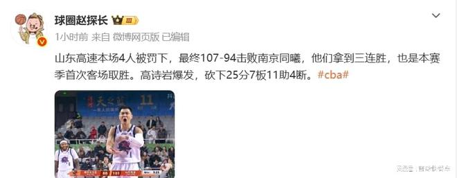 很顯然,作為山東隊主教練,邱彪在看到克里斯被驅(qū)逐后,他也是極為不滿,直接上前找到裁判理論,不過,裁判對此卻不予理會。盡管邱彪一向以溫文爾雅著稱,可這一次他確實是忍無可忍,直接脫下外套,狠狠朝地板上摔去,發(fā)泄心中的不滿。隨即,邱彪也被驅(qū)逐出場。至此,邱彪、克里斯、陶漢林以及郭凱,他們四人全部被罰下,可以說,山東隊這一戰(zhàn)雖然贏球了,但也是慘勝。不過,國字號球員高詩巖,他倒是證明自己,全場比賽他砍下25分7板11助,給郭士強長臉了。