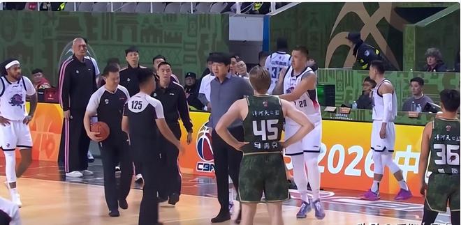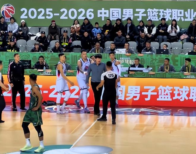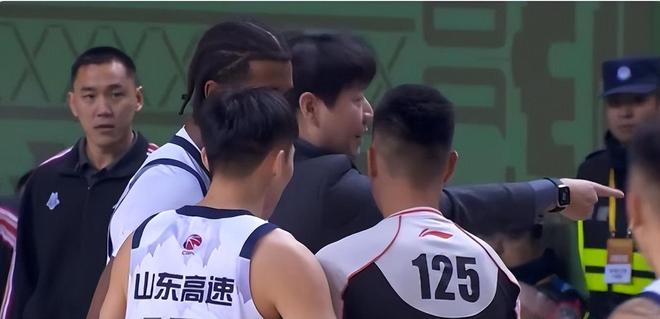 對此,山東男籃隊長高詩巖第一個反應(yīng),飛快地沖裁判跑去詢問。