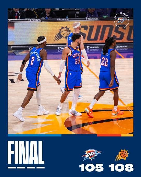北京時(shí)間今日,在NBA常規(guī)賽中,衛(wèi)冕冠軍俄克拉荷馬雷霆隊(duì)在客場以105-108不敵菲尼克斯太陽隊(duì),遭遇本賽季的第六場失利。