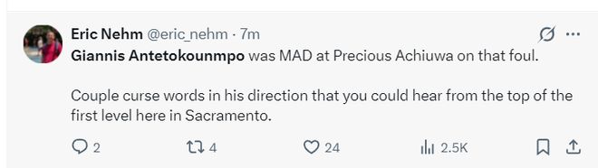 國王現場記者寫道:揚尼斯對阿丘瓦那個動作非常不滿,他很大聲的罵了臟話,我在看臺的第一層都能聽見。