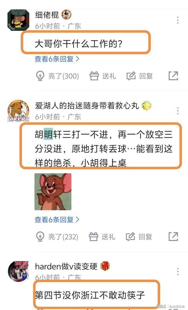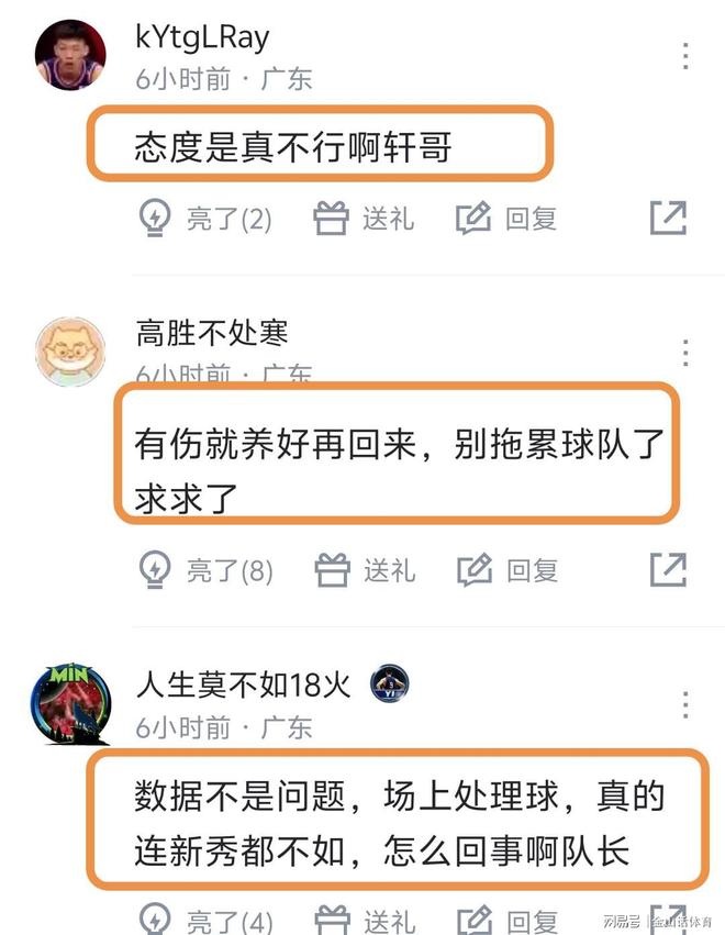 胡明軒糟糕的表現(xiàn),賽后也遭到網(wǎng)友一致詬病?!按蟾缒愀墒裁垂ぷ鞯??”;“胡明軒三打一不進(jìn),再一個(gè)放空三分沒(méi)進(jìn),原地打轉(zhuǎn)丟球…能看到這樣的絕殺,小胡得上桌”;“第四節(jié)沒(méi)你浙江不敢動(dòng)筷子”;“態(tài)度是真不行啊軒哥”;“有傷就養(yǎng)好再回來(lái),別拖累球隊(duì)了,求求了”;“數(shù)據(jù)不是問(wèn)題,場(chǎng)上處理球,真的連新秀都不如,怎么回事啊隊(duì)長(zhǎng)”;“不如上陳家政”;“不吹不黑,你現(xiàn)在和手帝一個(gè)級(jí)別”;“去去去打游戲去”……