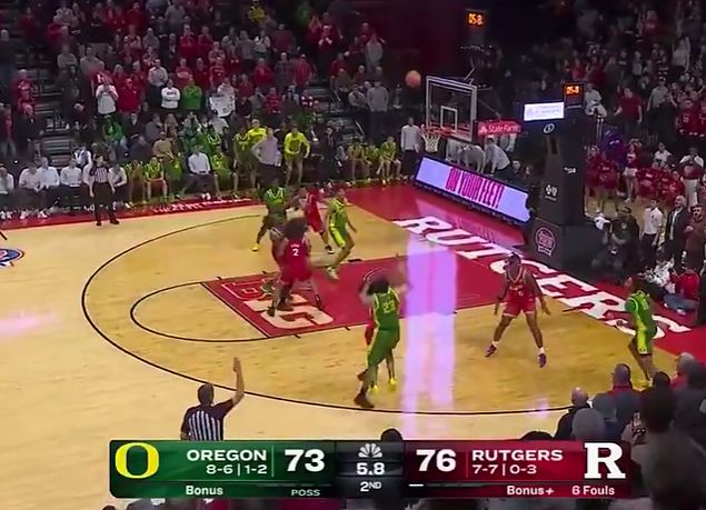 本場比賽末節(jié)最后時刻,一直要求打合理籃球的俄勒岡大學(xué)主帥,給予林葳無限開火權(quán),從而啟動了他最為熟悉的開掄模式,這哥們在CBA時期向來就是以大心臟著稱。