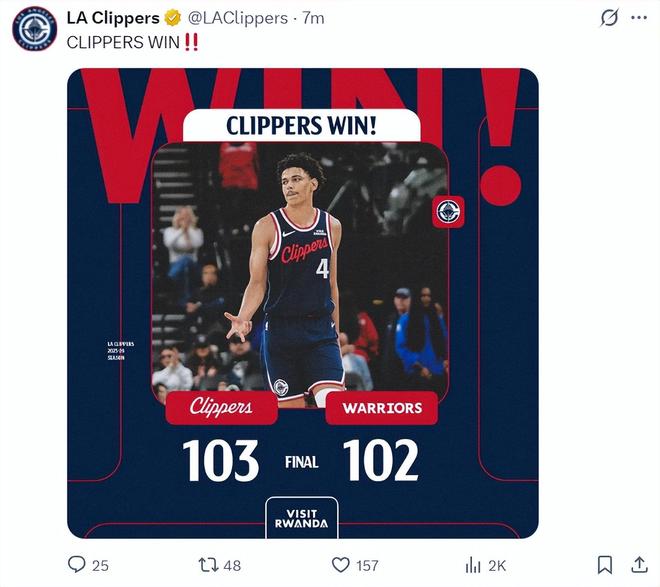 北京時間1月6日,快船以103-102拒絕勇士逆轉(zhuǎn)避免連敗。這場比賽哈登因為肩膀酸痛缺席,泰倫盧讓新秀科比-桑德斯打先發(fā)二號位,鄧恩移動到一號位,沒想到這位也叫科比的23歲大齡新秀迎來了生涯之夜,全場比賽拿到20+7創(chuàng)造生涯新高,快船贏球海報還是這位23歲的年輕人。
