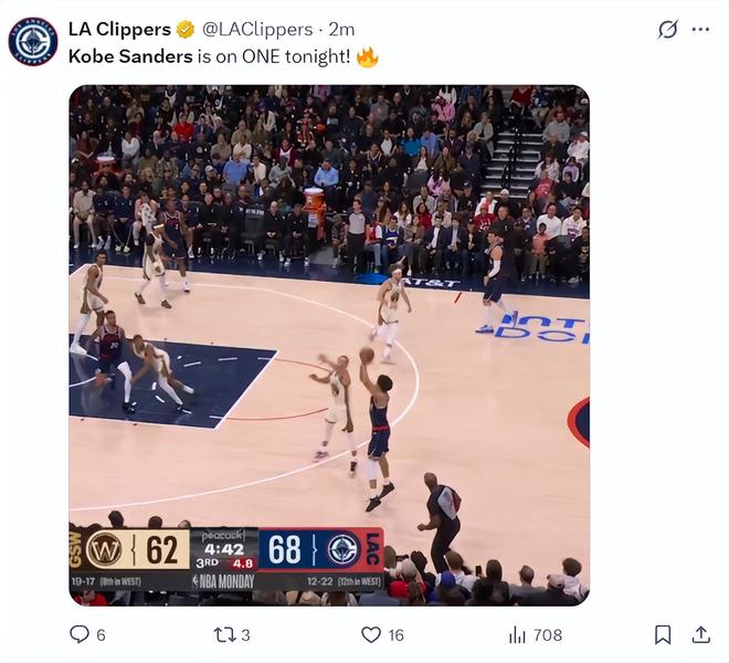 快船記者Lauren Rosen:桑德斯三節(jié)拿到20分已經(jīng)創(chuàng)造生涯新高,微波爐球員。