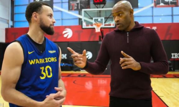 在勇士客戰(zhàn)猛龍期間,庫里在多倫多與猛龍名宿文斯-卡特進(jìn)行了訪談,期間卡特向庫里提問,是否意識到自己已經(jīng)徹底改變了籃球比賽的打法。