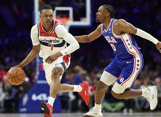 首節(jié)比賽,恩比德馬克西上來連續(xù)拿分,取得7-0開局,奇才隨后拿分咬住,喬治和馬克西三分再進(jìn),分差拉開到兩位數(shù),格萊姆斯空接暴扣取得32-19領(lǐng)先,可奇才隨后展開反撲,吉爾和卡林頓相繼命中三分,首節(jié)30-37落后76人。