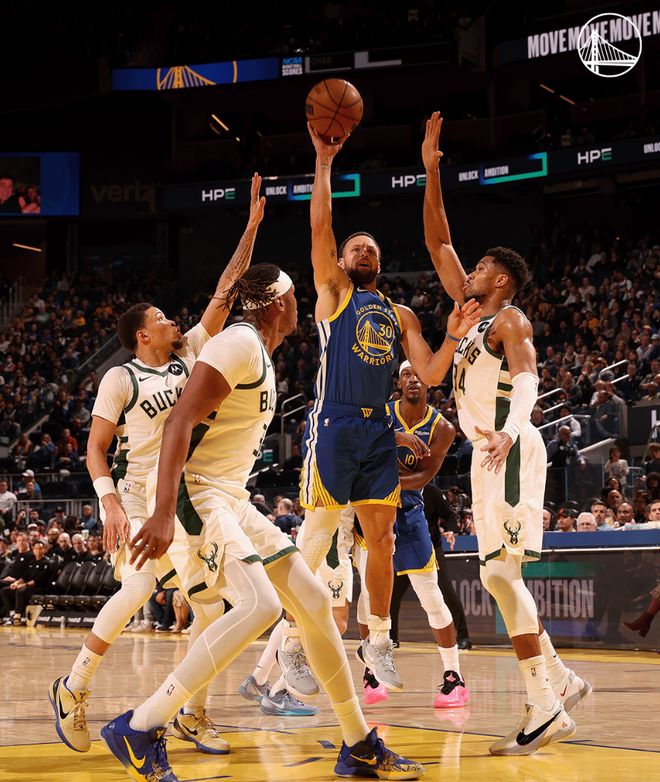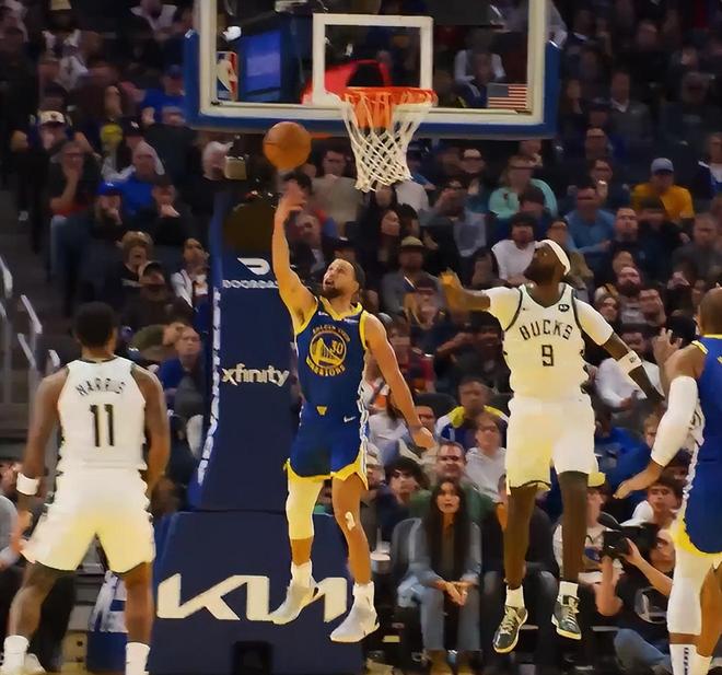 末節(jié)庫里拋投繼續(xù)命中,但雄鹿將分差縮小到10分,庫里連續(xù)兩次出手不中雄鹿將分差縮小到7分,最關(guān)鍵的時刻庫里命中一個三分球,這個三分球直接將比賽拿下,但場邊的裁判示意是一個兩分球,但這一球命中勇士還是鎖定勝局了。