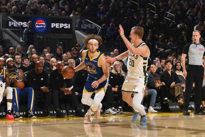 次節(jié)比賽,勇士連續(xù)兩節(jié)單節(jié)得分30+,且限制雄鹿首次單節(jié)不足25分。勇士內(nèi)外開花一波12-2攻勢取得10分優(yōu)勢,勇士多點(diǎn)開花繼續(xù)擴(kuò)大48-37領(lǐng)先優(yōu)勢,字母哥率隊(duì)回敬一波13-5攻勢追到差3分。勇士立即打出一波11-0攻勢擴(kuò)大14分優(yōu)勢,格林三分命中,勇士單節(jié)33-22凈勝11分,上半場結(jié)束勇士64-53領(lǐng)先雄鹿。前兩節(jié)比賽雙方均是命中23球,但勇士三分25中12,雄鹿三分僅14中4,庫里14分4助攻與梅爾頓3記三分11分,字母哥11中8得到18+4+3與小波特11分。