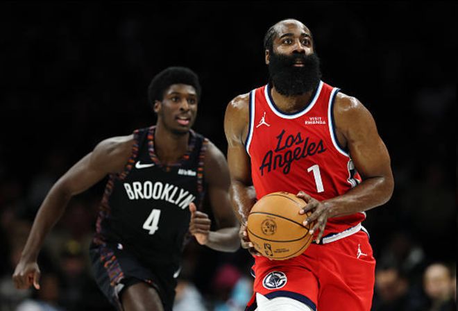 北京時間1月10日,NBA常規(guī)賽,洛杉磯快船以121-105擊敗布魯克林籃網(wǎng)。本場比賽,哈登表現(xiàn)得非常高效,他13投10中,三分球4投3中,砍下31分4籃板6助攻2蓋帽。根據(jù)數(shù)據(jù)統(tǒng)計,哈登創(chuàng)下了多項神跡。
