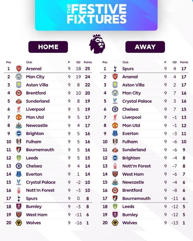 據(jù)數(shù)據(jù)顯示,在英超聯(lián)賽已進(jìn)行的9個(gè)主客場(chǎng)比賽中,各隊(duì)表現(xiàn)呈現(xiàn)巨大差異。阿森納憑借主場(chǎng)25分的強(qiáng)勢(shì)表現(xiàn)領(lǐng)跑主場(chǎng)積分榜,而托特納姆熱刺則上演主場(chǎng)低迷、客場(chǎng)強(qiáng)勢(shì)的逆襲,成為客場(chǎng)積分榜頭名。