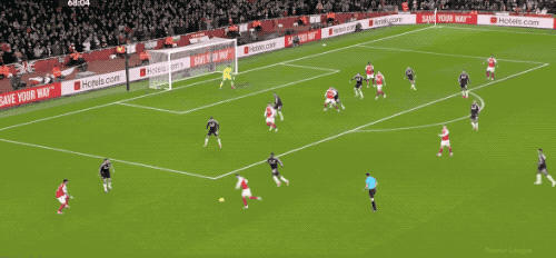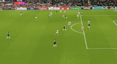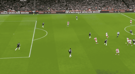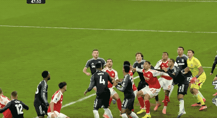 第48分鐘,阿森納獲得本場第一個角球,薩卡開出,加布里埃爾在馬丁內(nèi)斯的身下?lián)岦c,將球打進(jìn)。