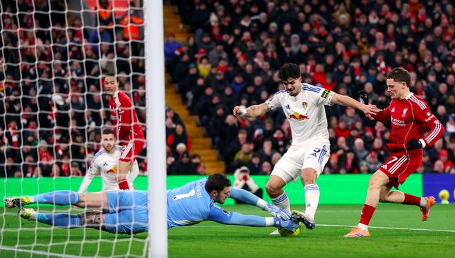 整個(gè)上半場(chǎng),利物浦完成9次射門,3次射正,利茲聯(lián)2次射門都打在門框范圍,兩隊(duì)互交白卷。