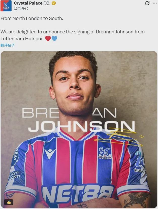 官方:水晶宮宣布從熱刺簽下了布倫南-約翰遜。