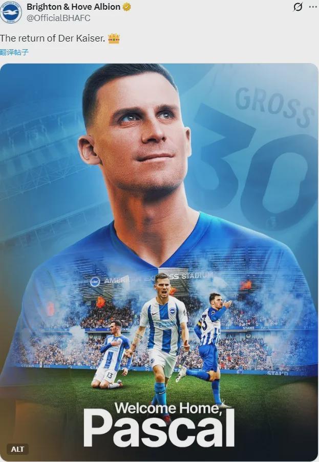 官方:布萊頓宣布從多特蒙德簽回了34歲的中場(chǎng)帕斯卡爾-格羅斯!交易為直接轉(zhuǎn)會(huì)。去年夏天,格羅斯剛剛從布萊頓轉(zhuǎn)會(huì)加盟多特蒙德。