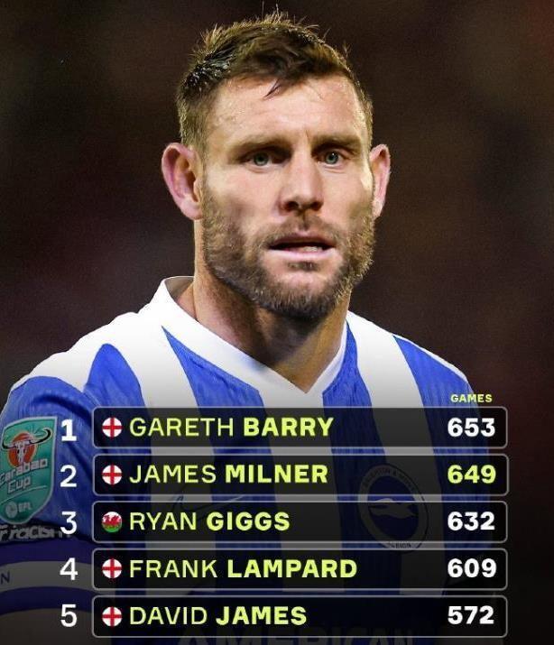1月4日,是英格蘭老將米爾納40歲的生日,對(duì)于一位40歲的老將來說,他的背后是連續(xù)24個(gè)賽季、橫跨25個(gè)自然年在英超登場(chǎng)的驚人紀(jì)錄。649次英超出場(chǎng),距離加雷斯,巴里保持的653場(chǎng)歷史紀(jì)錄,只差4場(chǎng)比賽。
