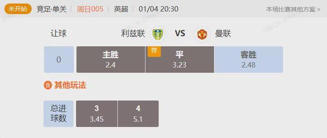 本場機(jī)構(gòu)普遍給出平手的指數(shù),也不看好曼聯(lián)能客場輕松帶走3分,綜上我看好利茲主場能守住一場平局。