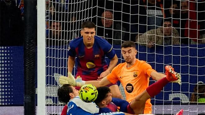 最精彩的一幕出現(xiàn)在上半場(chǎng)補(bǔ)時(shí)階段:佩雷·米利亞接卡洛斯·羅梅羅精準(zhǔn)傳中,近距離頭球攻門,皮球直奔死角。千鈞一發(fā)之際,加西亞飛身單掌將球托出橫梁!全場(chǎng)瞬間沸騰,而這一次,歡呼屬于巴薩。