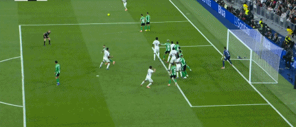 第65分鐘,全線壓上的皇馬后防空虛,貝蒂斯中后場快速反擊,魯伊巴爾中線前拿球晃開防守后精妙斜塞,皮球剛好穿過回防球員到了禁區(qū)內(nèi),埃爾南德斯高速插上突入禁區(qū)得球過掉出擊的門將庫爾圖瓦,隨后再冷靜晃倒起身再撲過來的庫爾圖瓦打空門得手,貝蒂斯1:3扳回一球?;蜀R隨后再展開猛烈攻勢,第81分鐘,皇馬全線壓上,呂迪格中圈弧頂左側(cè)過頂長傳,居萊爾反越位成功突入禁區(qū)倒三角將球卸下,居萊爾橫傳門前,貢薩洛小禁區(qū)內(nèi)前點(diǎn)搶點(diǎn)巧妙的插花腳腳后跟一磕,皮球直入球門遠(yuǎn)端死角,貢薩洛上演帽子戲法,皇馬4:1再次取得3球領(lǐng)先優(yōu)勢。補(bǔ)時(shí)階段,皇馬右路壓上,巴爾韋德禁區(qū)角上45度角兜傳門前,貝蒂斯后防漏人,無人防守的加西亞插上小禁區(qū)內(nèi)一步左腳外腳背凌空撩射得手,皇馬5:1鎖定勝局。