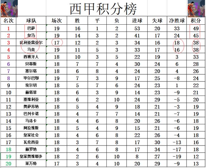 積分榜方面,皇馬主場大勝后,依然是4分的差距緊咬巴薩排在第2。馬競今天無力擊敗皇家社會(huì),這樣的話他們就無法超過少賽2場的比利亞雷亞爾回到前3。慘敗的貝蒂斯同樣無法縮小和西班牙人的差距,還是差了后者5分排在第6。