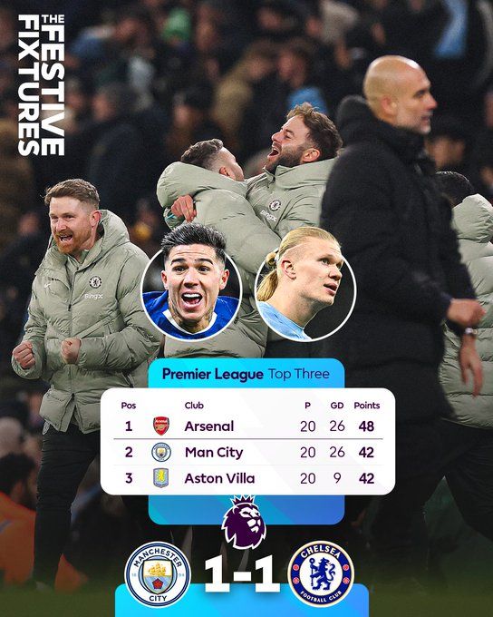 北京時(shí)間1月5日01:30,英超聯(lián)賽第20輪,曼徹斯特城坐鎮(zhèn)伊蒂哈德球場迎戰(zhàn)切爾西。上半場哈蘭德中柱,賴因德斯爆射建功,切爾西零射正,曼城暫1-0切爾西;下半場內(nèi)托失良機(jī),格瓦迪奧爾傷退,恩佐絕平,最終曼城1-1切爾西,距榜首6分。