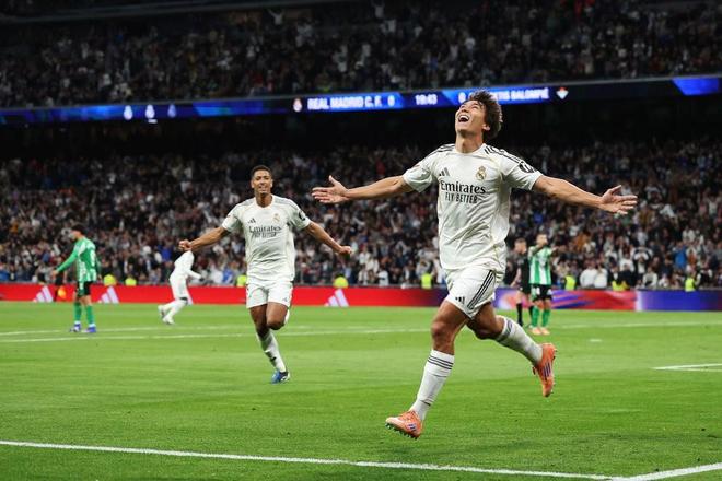 今天的比賽中,皇馬上半場(chǎng)羅德里戈傳后點(diǎn),貢薩洛-加西亞頭球破門(mén)。下半場(chǎng)巴爾韋德傳球,貢薩洛-加西亞轟出凌空世界波完成雙響,居萊爾傳球,貢薩洛-加西亞腳后跟破門(mén)上演完美帽子戲法,