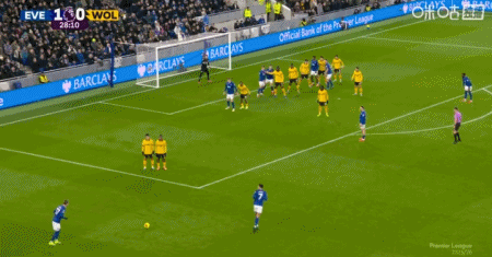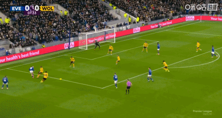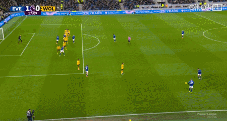 第17分鐘,伊羅格布南助攻,邁克爾-基恩墊射破門(mén),埃弗頓1-0狼隊(duì)